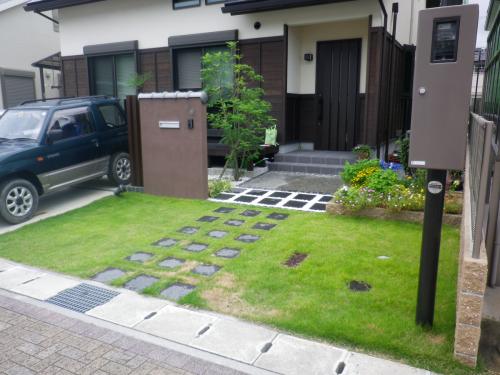 きれいに手入れされた天然芝のオープン外構ですが、現状はお