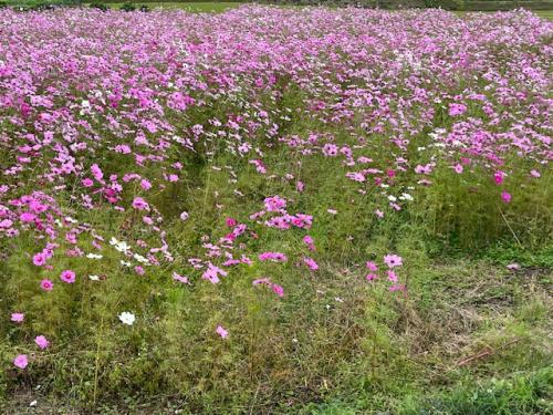 写真は群生させた花畑で、秋空の下風にそよぐ姿が印象的でした。