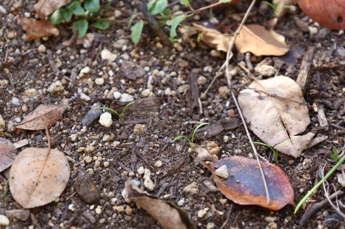 そしてこちらは、10月末に種を植えた花壇です。細い双葉がでていました。これから寒くなってきますが、無事育つのでしょうか?少し心配です。