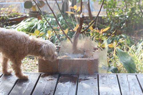 そんな氷に興味津々だったのが、うちの犬。別の容器に張った氷を置いてあげると、そばで眺めたり氷をぺろぺろとなめていて、その様子に思わずほっこりしました。