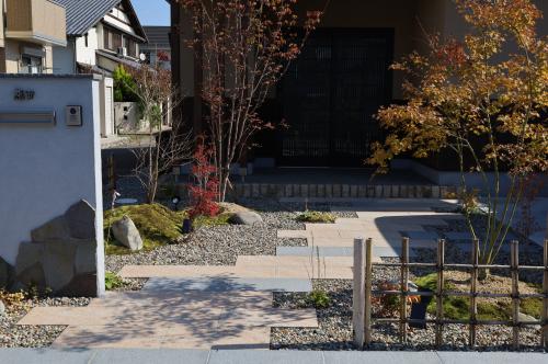 少しモダン和風の庭として現代版の敷石や直線を取り入れ、