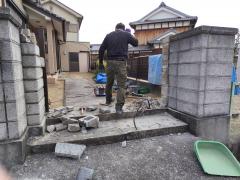 門柱と塀の撤去工事中