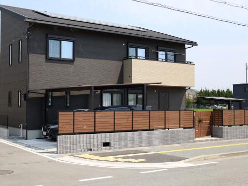 (たつの市施工例・南西の角地・セミクローズ外構)
