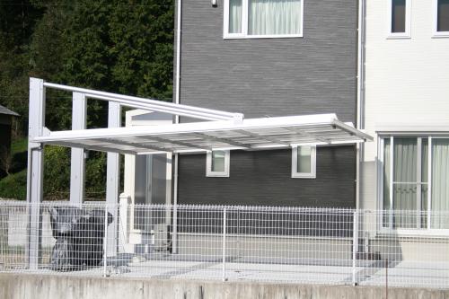 ゆったりとした余裕のある敷地に柱を奥側に寄せた2台用のカーポート。雑草の心配もなく空間の利用はフリー。