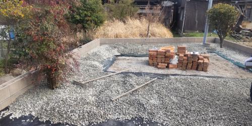 姫路市 リフォーム工事 防草シート・砕石敷きです。